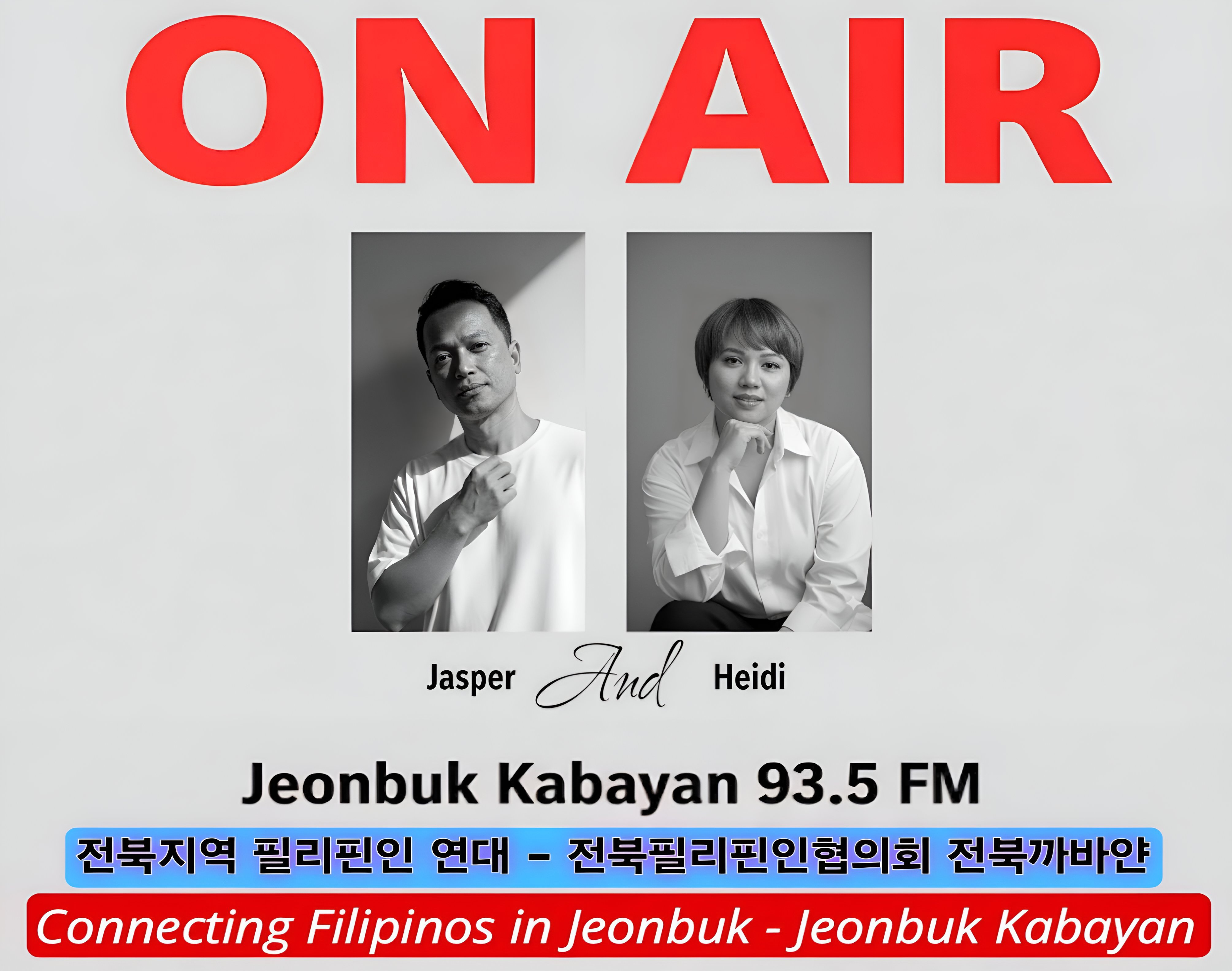 '한국과 필리핀을 잇는 시간!' 한국과 필리핀을 잇는 문화다리이자 필리핀인들의 목소리를 담아내는 시간입니다. 또한, 지역사회 속 신한국인(다문화)의 공존을 알리고, 상호존중과 이해의 가치를 확산하는 데 중요한 역할을 할 예정입니다. 제작 : 전북필리핀인협의회 전북까바얀 93.5 라디오 본방 : 매월 3주차 수요일 오전 9시재방 : 매월 3주차 일요일, 4주차 수요일, 4주차 일요일 오전 9시