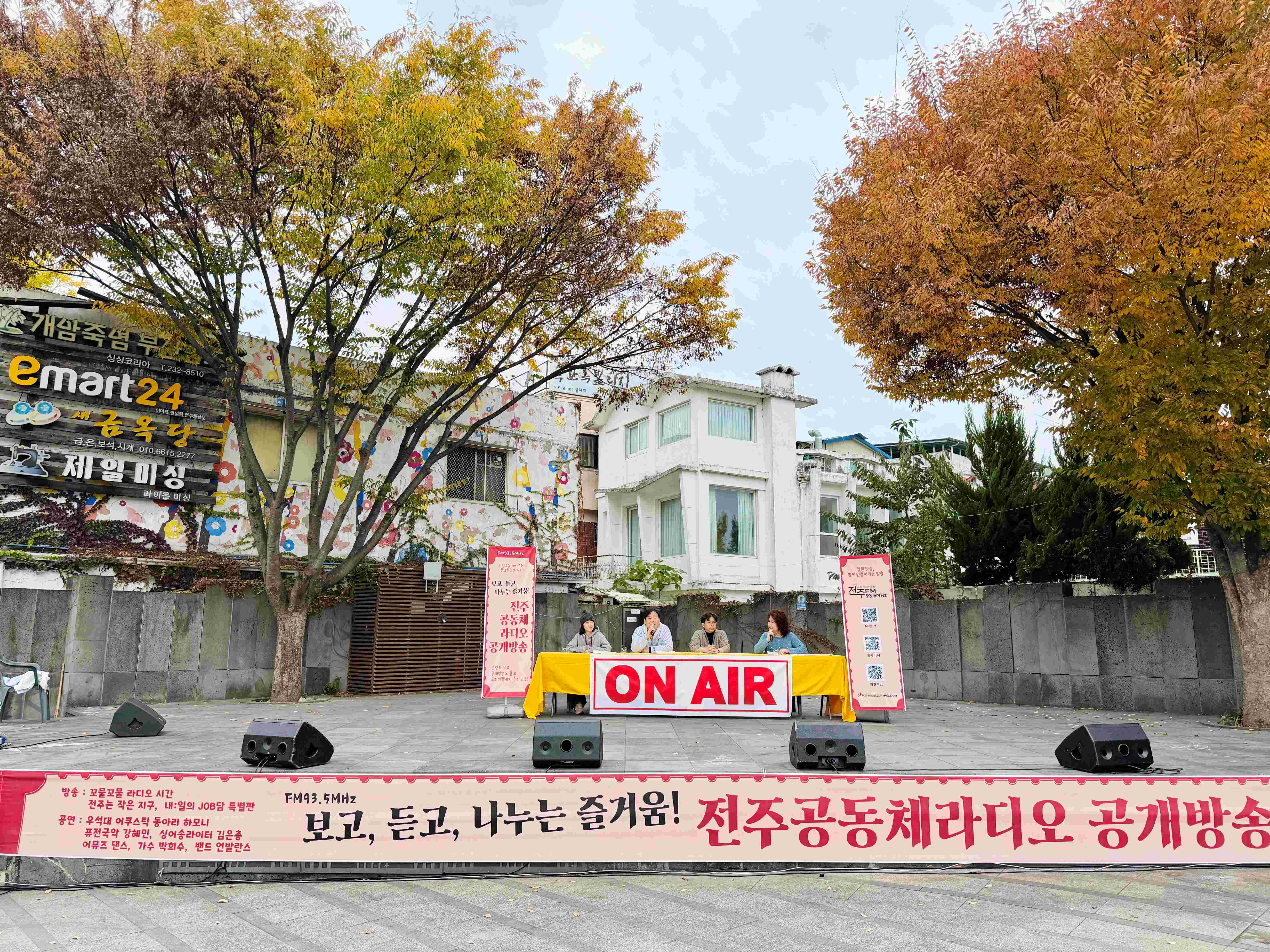 전주 FM 공동체 라디오, 풍남문 공개방송 성황리 개최전주 FM 공동체 라디오(93.5MHz)가 풍남문 광장에서 제2회 공개방송 ‘보고 듣고 나누는 즐거움’을 열고 시민들과 소통하는 시간을 가졌다. 가을 정취 속에서 진행된 이번 행사는 1부와 2부로 나뉘어 공동체의 다양성과 지역 삶의 이야기를 풍성하게 전했다.1부에서는 제작자들과 시민 제작자들이 출연해 공동체 라디오의 의미와 제작 철학을 공유했다. 이주민들이 참여한 토크 코너에서는 한국 생활 경험과 고향 문화를 나누며 다문화 공감대를 확장했다. 우석대 동아리 ‘하모니’의 통기타 공연과 퓨전 국악 공연도 큰 호응을 얻었다.2부 ‘내일의 잡담’에서는 타투이스트, 타로, 자영업자 등 다양한 직업인이 등장해 일과 삶에 대한 진솔한 이야기를 들려줬다. 이어 가수 박희수와 밴드 ‘언밸런스’의 라이브 공연 그리고가수 김은총이 피날레를 장식하며 현장을 뜨겁게 달궜다.전주 FM 공동체 라디오는 “시민이 참여해 만드는 열린 방송”이라는 취지 아래 앞으로도 다양한 지역 목소리를 전해 나갈 계획이다.