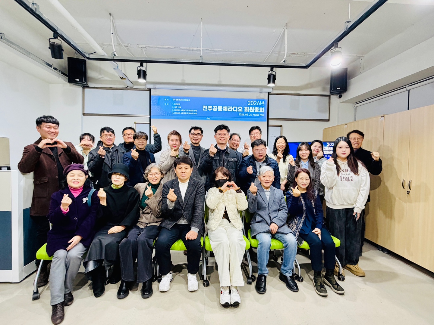 지난 2월 26일, 2026년 전주공동체라디오 정기총회를 진행했습니다. 이번 총회는 25년 말 기준 전주공동체라디오 회원은 87명 가운데 출석과 위임을 합쳐 51명이 참여해 성원이 성립되었고, 예정대로 진행되었습니다. 정기총회는 매년 한 번씩 지난 활동을 돌아보고 올해 계획을 함께 정하는 자리입니다. 공동체라디오가 어떤 방향으로 가야 하는지 회원들과 공유하는 중요한 시간이기도 합니다. 인사말(김은규 이사장) 먼저 2025년 활동을 돌아보았습니다.지난해에는 방송 참여가 많이 늘어나서 총 55개의 프로그램이 운영되고 100명 넘는 방송활동가가 참여했습니다. 이주민 단체나 지역단체와 협력하는 활동도 시작됐고, 청소년 라디오 교육도 처음으로 진행했습니다. 전체적으로 보면 참여는 확실히 늘어났습니다. 새로운 제작자도 많이 생겼고 방송도 다양해졌습니다. 하지만 아직 부족한 점도 함께 이야기했습니다. 지역에서는 아직 공동체라디오를 잘 모르는 분들이 많고, 참여가 후원이나 지지로 이어지지 못하는 한계도 있었습니다. 또 안정적으로 운영하기 위한 재정 기반을 만드는 일도 여전히 중요한 과제로 남아 있습니다. 감사보고 (김수돈 감사) 이어서 진행된 감사보고에서는 공동체라디오가 앞으로 더 발전하기 위해 필요한 점들이 제시되었습니다. 시민 방송활동가를 계속 양성해서 공동체라디오로서의 정체성을 지켜내야 한다는 점, 이사회와 운영위원회의 역할이 더 필요하다는 점, 그리고 무엇보다 재정 확보 방안을 더 고민해야 한다는 의견이 나왔습니다. 이번 총회에서 가장 큰 변화는 대표 체제를 단독 대표에서 공동대표 체제로 바꾸기로 한 것입니다. 앞으로는 대표이사가 두 명이 되어 각자 역할을 나누어 운영하게 됩니다. 이렇게 바꾸는 이유는 공동체라디오가 계속 성장하는 과정에서 운영 구조를 좀 더 안정적으로 만들기 위해서입니다. 또한, 2025년 의견주셨던 규정과 내부 규칙을 회원들이 열람할 수 있도록 하는 내용도 함께 정관에 반영했습니다. 정관 개정에 맞춰 임원 선출도 진행되었습니다.대표이사는 공동대표 체제로 운영하게 되었고, 이사 15명, 감사 2명의 임기가 종료되어 새로운 이사와 감사도 선출되었습니다. 연임 11명(이사 10명, 감사 1명), 신임 4명(이사 3명, 감사 1명)이 임원으로 선출되었습니다. 김은규 대표이사는 연임되었고, 새로운 공동 대표이사로 권승환 이사가 선출되었고, 남지숙, 이종규 회원이 신임이사로, 김수돈 감사가 박근숙 회원에게 감사직을 넘기고 이사로 선출되었습니다. 새로 선출된 임원들은 공동체라디오가 지역사회에 도움이 되는 공익 미디어로 자리잡을 수 있도록 노력하겠다는 인사를 전했습니다. (좌) 권승환 신임대표이사, (가운데) 남지숙 신임이사, (오른쪽) 박근숙 신임감사 올해 사업 계획도 함께 이야기했습니다.올해는 특히 중요한 해입니다. 공동체라디오 재허가 심사가 예정되어 있어서 앞으로 5년의 방향을 준비해야 하는 시기이기 때문입니다.올해는 크게 세 가지를 중심으로 추진하기로 했습니다. 지역사회 영향력을 넓히는 일 공익적인 콘텐츠를 강화하는 일 지속 가능한 운영 구조를 만드는 일 선거방송 준비, 대표 프로그램 개발, 재난방송 콘텐츠 구축, 청소년과 이주민 참여 확대 같은 계획도 포함되어 있습니다. 총회에 참석하신 회원들께서 제작자들의 회원 가입이나 후원 참여에 대한 이야기도 나왔습니다. 방송에 참여하는 분들이 가능하면 회원으로 함께하면 좋겠다는 의견이 있었고, 이 부분은 제작자협의회와 편성위원회, 이사회에서 좀 더 논의해 보기로 했습니다. 전주공동체라디오는 참여하는 사람들이 함께 만들어가는 방송입니다. 이번 총회에서 논의된 내용들도 앞으로 활동 속에서 하나씩 실현해 나가려고 합니다. 참석하지 못하신 회원 여러분도 앞으로 활동에 계속 관심을 가지고 함께해 주시면 좋겠습니다. 감사합니다.