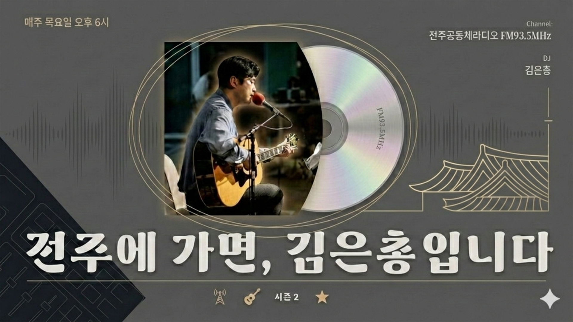 '싱어송라이터 김은총의 지역음악 자급자족과 지역문화 엿보기' ‘노래가 만들어진 시간과 마음’을 기록하고 공유하는 음악·에세이 프로그램. 진행자가 수년간 축적해온 ‘주간 김은총’ 프로젝트 이야기와리뉴얼된 수상한 초대석으로 돌아온 '전주에 가면, 김은총입니다 - 시즌2'! 제작 : 김은총본방 : 매주 목요일 오후6시재방 : 매주 일요일 오후6시
